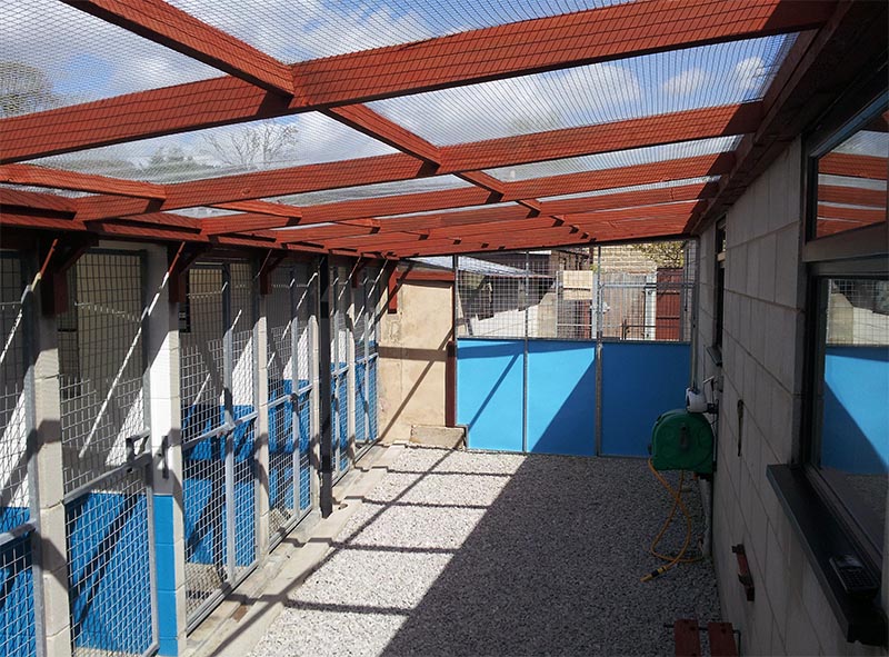 The kennels and chalets are purpose built and each has a generous indoor sleeping area, with a raised bed, comfortable vet bedding and a pop hole leading to a fully covered outer run. The kennels and chalets are heated (feline guests have their own thermostatically controlled heated bed), extra direct heat is available upon request, and always have fresh water. Our outside exercise runs are fully secure.