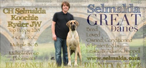 At the quarter stage of the 2014 we are delighted that Ch. Selmalda Koochie Ryder J.W. is TOP DANE. http://www.dogworld.co.uk/product.php/113449