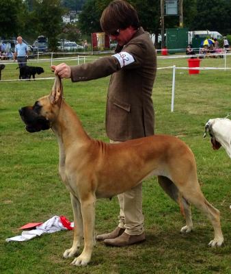 We had a replacement judge where Ann Foxwell looked over a wonderful entry of 100 exhibits. We were delighted with our Danes results as follows - Ch. S. Koochie Ryder J.W. 1st Yearling and RDCC S. Angel Of Harlem J.W. 1st Yearling S. Love Rescue Me 2nd Yearling S. The Kiss J.W. 2nd Limit