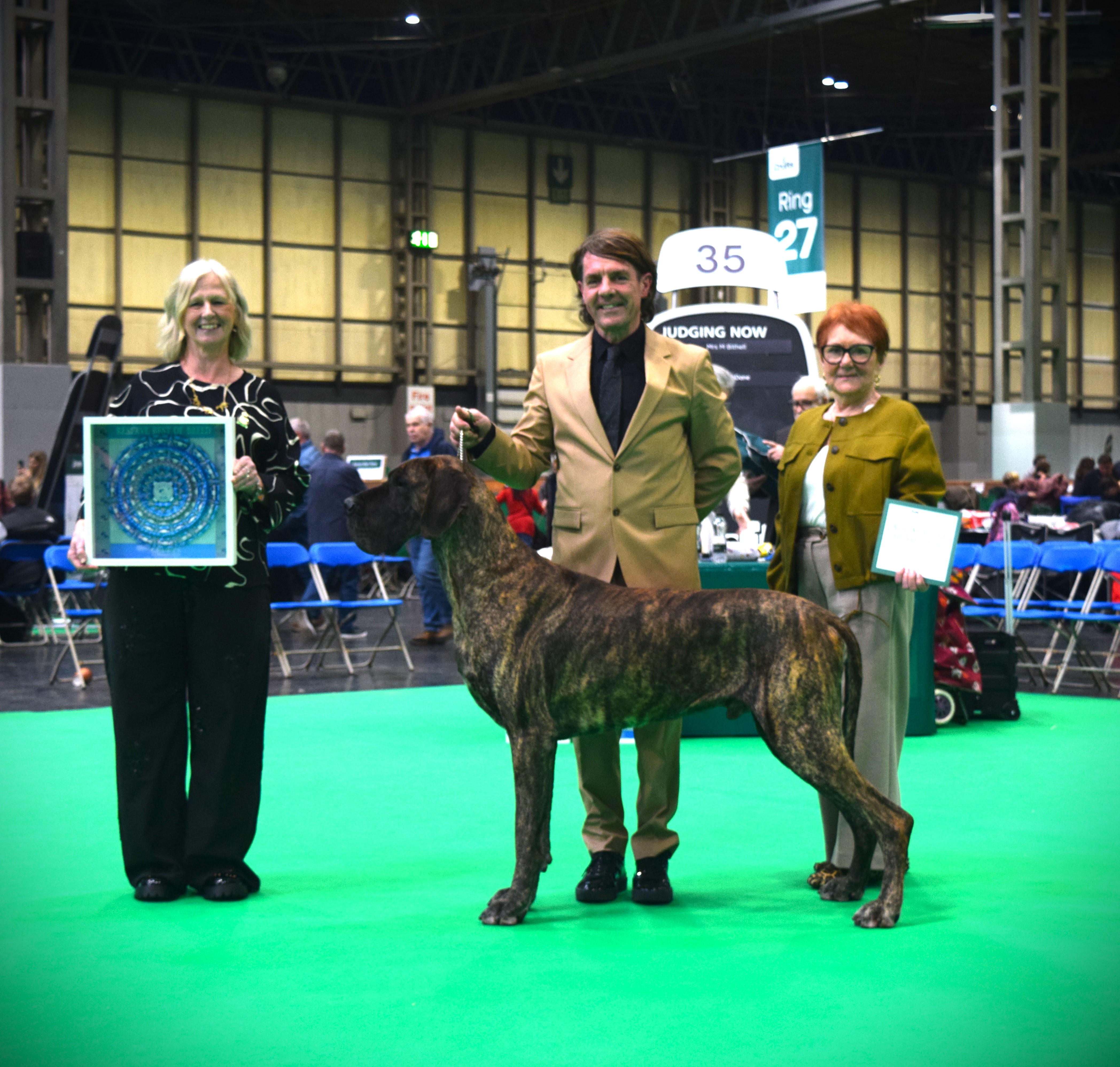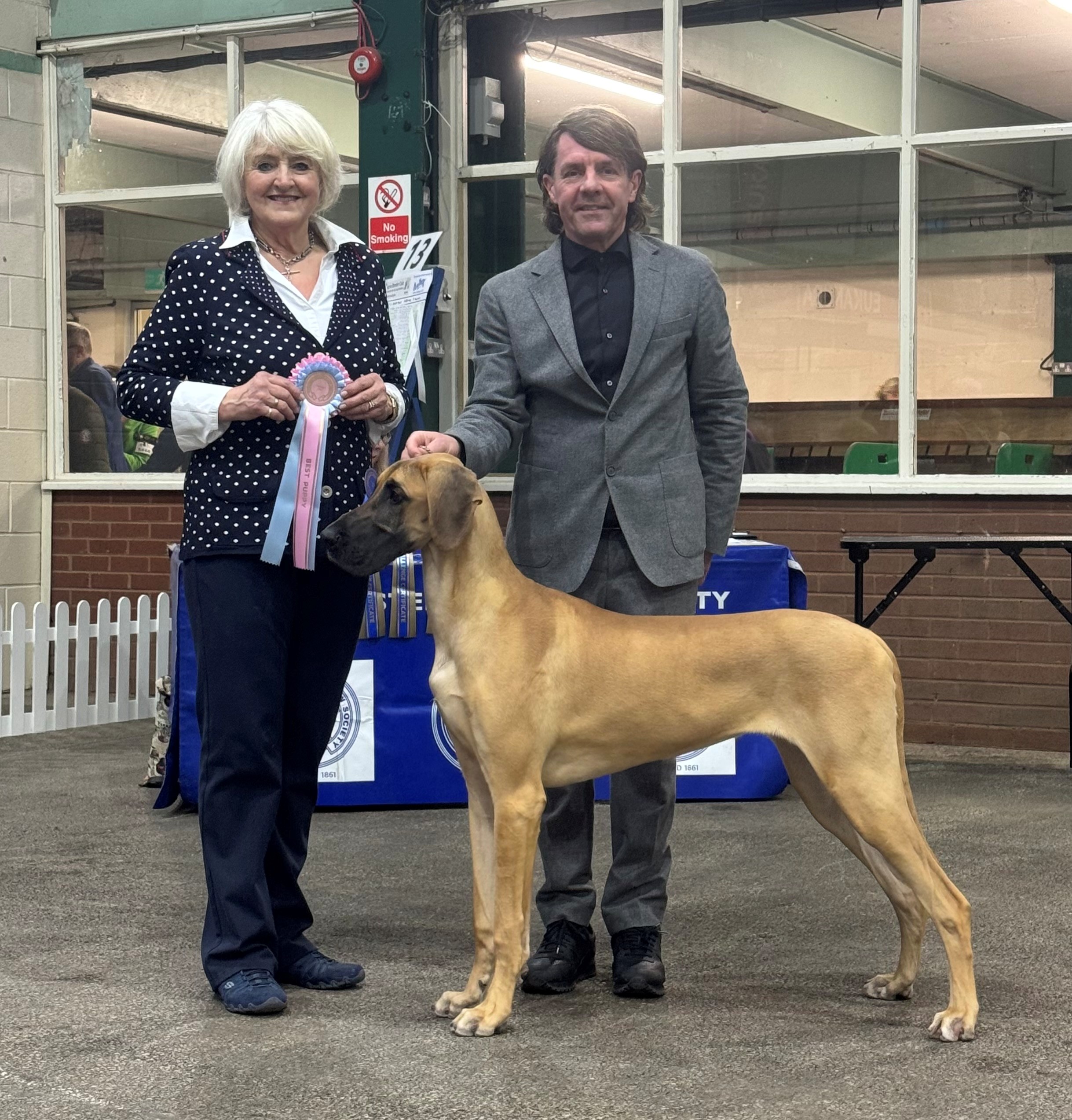A great start to 2026 at Manchester GCS and a super entry for Patsy Hollings (61/67) with an early start to ensure we were ringside! Ch. Selmalda Jealous Guy 1st Open Dog & DCC #79 (Jr. Cr. Ch. Am. Ch. King Arthur De Casaarabal X Ch. Selmalda ZiZi’s Journey J.W.) Guy also claimed a very respectable 3rd in the Eukanuba Champion Stakes - thanks Tom Mather. Selmalda My Wild Flame (pictured) 1st Puppy B. & Best Puppy In Breed (GCH AM Ch. Casaarabal's The EstherChild x Ch. Selmalda Oh Lori) Lesley and I are, as ever, proud as punch, with how our Danes conduct themselves and lovely to have Debbie with us to witness the hard work that she contributes to! Great to see Candice & Heather, thanks for all you do!