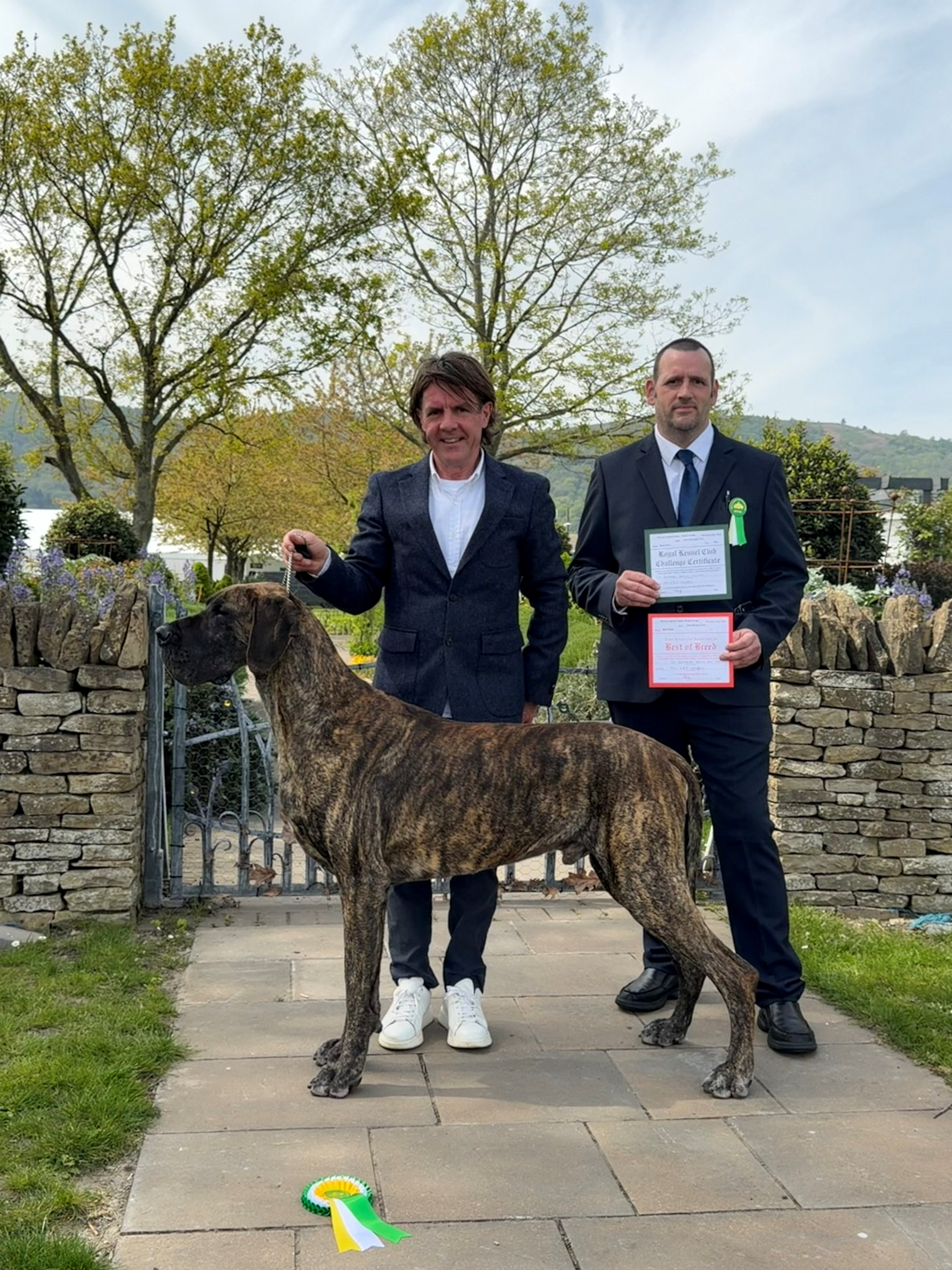 The parent club, the oldest Great Dane Club in the world - The Great Dane Club. Always an honour to exhibit at this show and even more rewarding when you come out on top. Judge John Purnell awarded Ch. Selmalda Jealous Guy 1st in Open Dog and ultimately, in the challenge, the CC. Along with co-judge Glynn Payne they unanimously agreed that he should be BEST IN SHOW.